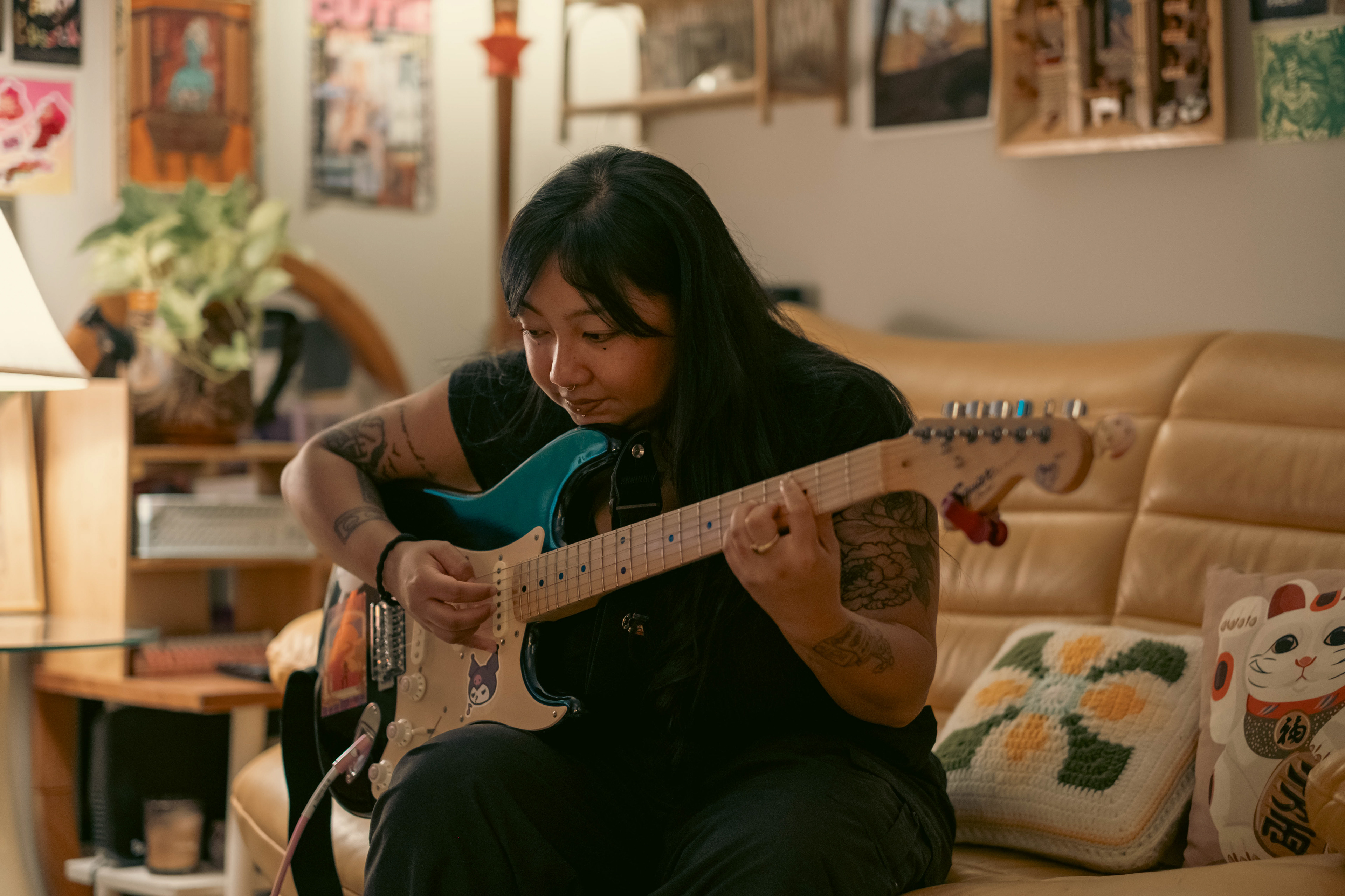 This is Gabriel aka Julius, in dreams - Toronto based Filipino/Chilean musician. Tucked inside his cozy studio apartment, he surrounds himself with instruments and intimate mementos—gifts from friends, tokens from his partner—that breathe life into his music. A longtime fixture in Toronto’s music scene, his journey spans from throwing warehouse parties to recording delicate, introspective tracks in his home studio. His space reflects both motion and memory: bikes by the door, a lineup of guitars within arm’s reach, and a quiet rhythm shaped by city streets and lifelong influences. In this personal haven, creativity isn’t manufactured—it's lived and rooted in these moments that unfold between runs, long bike rides and late night sessions.